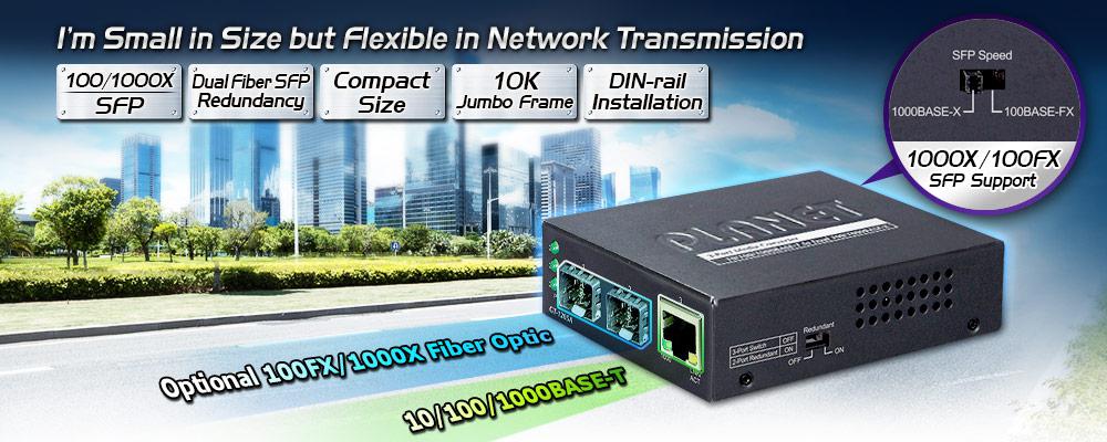 Adjustable 3-Port Switch Mode or 2 Fiber Port Redundant Mode