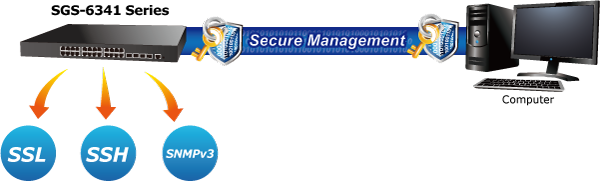 For reducing product learning time, the SGS-6341-24P4X offers Cisco-like command via Telnet or console port and customer doesn’t need to learn new command from these switches. Moreover, the SGS-6341-24P4X offers secure remote management by supporting SSH connection which encrypts the packet content at each session.