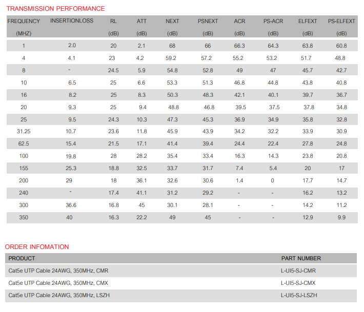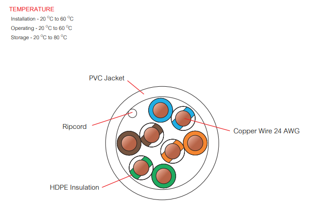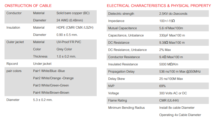 4 pairs twisted cable, using solid bare copper, 24 AWG insulated with a special