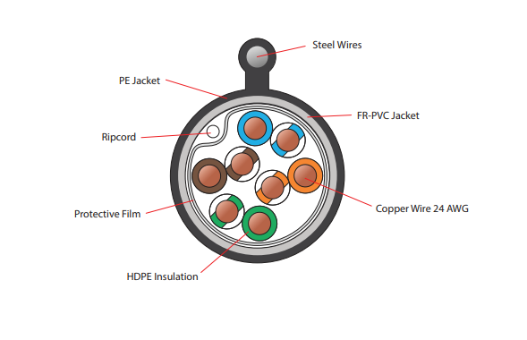 HDPE-high density polyethylene. External jacket using black PE-linear low density