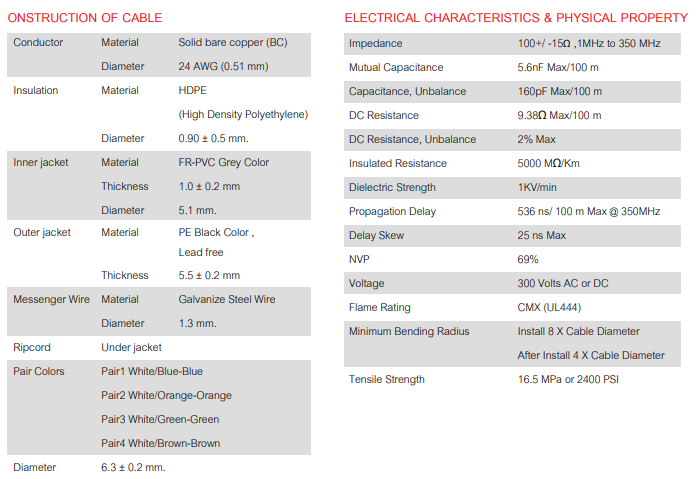 – NEMAWC63.1 ICEAS-90-661 Category 5E, NEMA WC 63.1, ASTM D 4566-98.