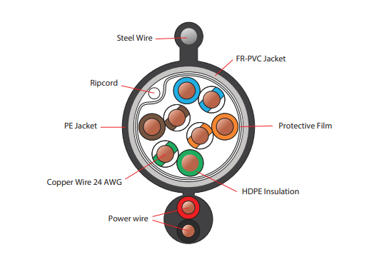 HDPE-high density polyethylene. External jacket using black PE-linear low density