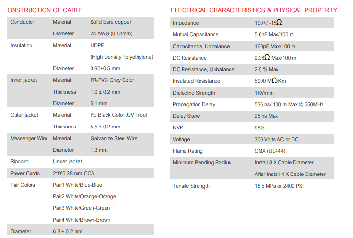 – NEMAWC63.1 ICEAS-90-661 Category 5E, NEMA WC 63.1, ASTM D 4566-98.