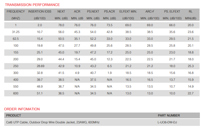 – ICEA S-102-700 Category 6,