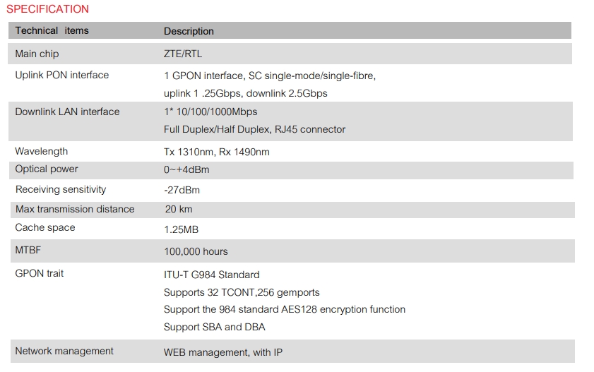 technology of layer 2 as well.It supports both GPON and EPON OLT, auto discovery and register. It is highly reliable