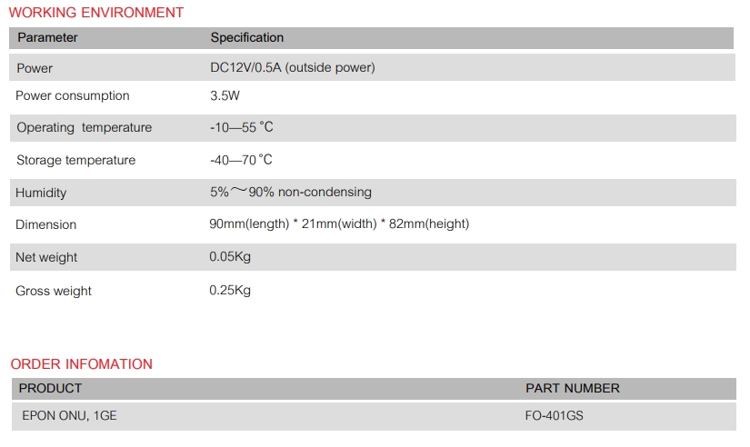 FO-401GS GPON/XPON ONT is designed for fulfilling FTTH ultra-broadband access request of home and