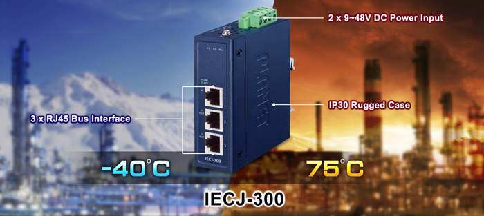 The IECJ-300 is an ideal EtherCAT junction solution which provides quick installation, real-time connection status monitoring, wide-ranging power input and wide operating temperature to improve work efficiency, making them suitable for the harsh environment. Besides, both of them come with three 100BASE-TX RJ45 ports. Through the EtherCAT technology, up to 65,535 devices can be supported without the limitation of the type of topology — line, bus, tree, star or any arrangement — being used.