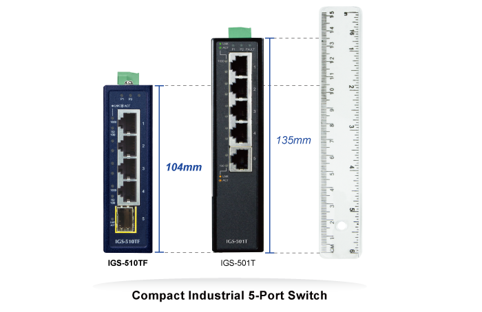 The compact sized IGS-510TF is specially designed to be installed in a narrow environment, such as wall enclosure. It can be installed by fixed wall mounting or DIN rail, thereby making its usability more flexibly and easily in any space-limited location.