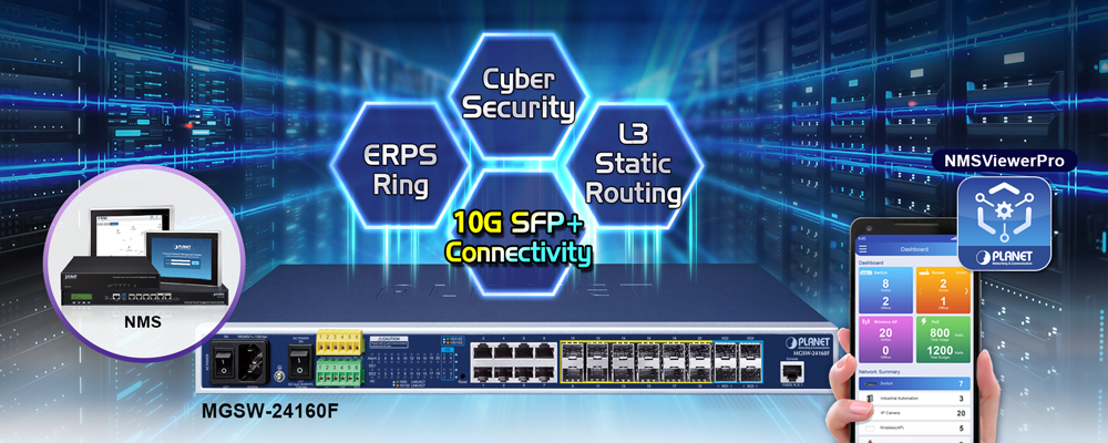 PLANET’s Universal Network Management System (UNI-NMS), NMSViewerPro and CloudViewerPro app provide robust support for IT staff in effectively managing and monitoring all network devices, including the MGSW-24160F, from remote locations. Tailored for deployment in both enterprises and industries where the MGSW-24160F is utilized remotely, these systems enable the identification of bugs or faulty conditions without the need for on-site visits. With PLANET’s Remote Management Solution, businesses of all types can now be swiftly and efficiently managed through a unified platform, streamlining operational oversight.