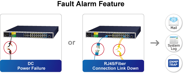 The MGSW-24160F incorporates a Fault Alarm feature that promptly notifies users of any issues with the switches. This valuable feature eliminates the need for users to spend time locating the problem, resulting in significant time and human resource savings.
