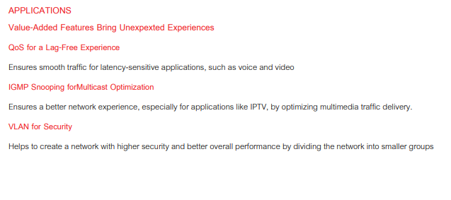 management features, 802.1Q VLAN, port isolation, port mirroring, QOS,