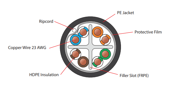 copper conductor 23 AWG, insulated with HDPE Jacket