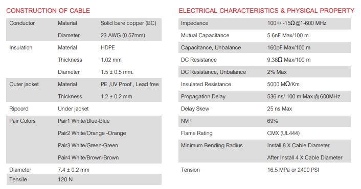 High-Performance Data Cable. Outdoor UV Rated Jacket.